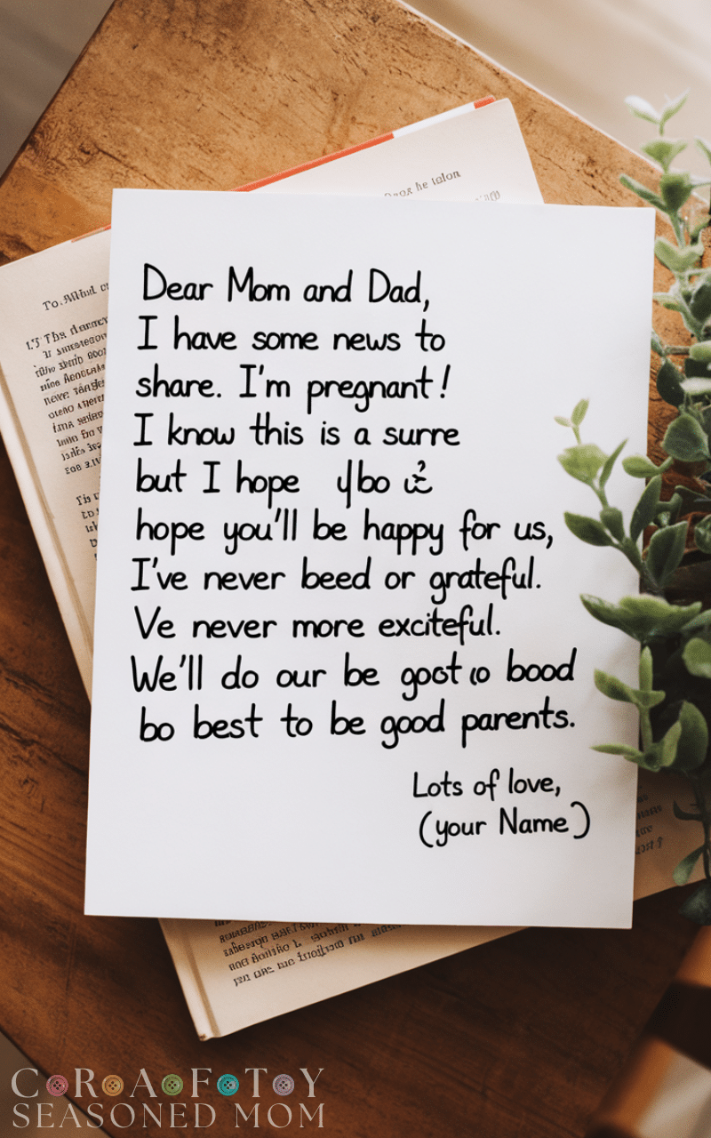 Writing a heartfelt letter is one of the most emotional ideas to tell your parents you’re pregnant. You can express your feelings, gratitude, and excitement while leading into the announcement. This approach allows your parents to reread your words and treasure them forever. A handwritten message adds depth and sincerity to such a life-changing moment.