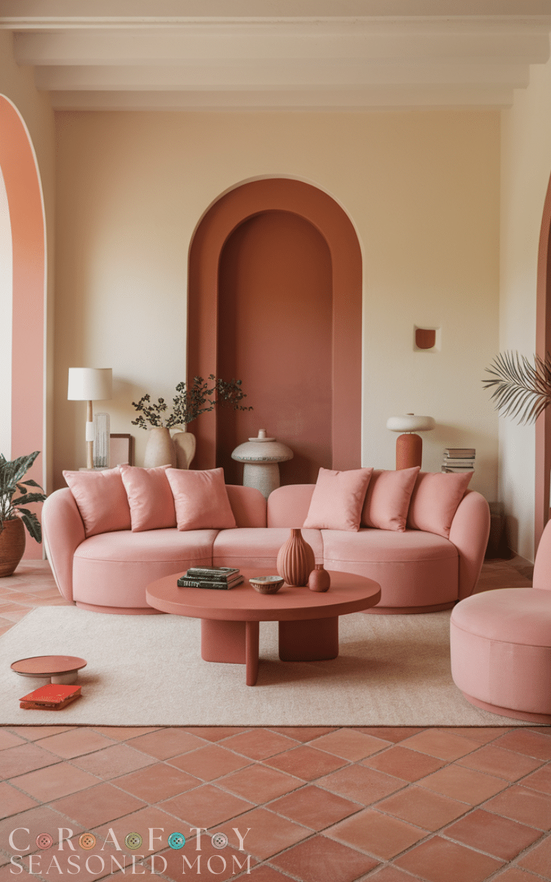 Blush pink adds a soft, sun-kissed glow to mediterranean color ideas. Inspired by warm sunsets over the Spanish Coast, this gentle shade pairs beautifully with terracotta and cream. Mediterranean color ideas that feature blush pink feel romantic, warm, and inviting, perfect for bedrooms or cozy living areas.