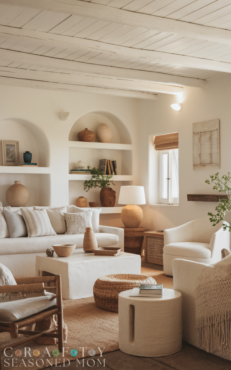 Creamy ivory offers warmth compared to plain white and is a beautiful base for mediterranean color ideas. It softens bold accents and enhances natural textures. Mediterranean color ideas that use creamy ivory feel elegant and timeless, creating a cozy yet refined atmosphere in any room.