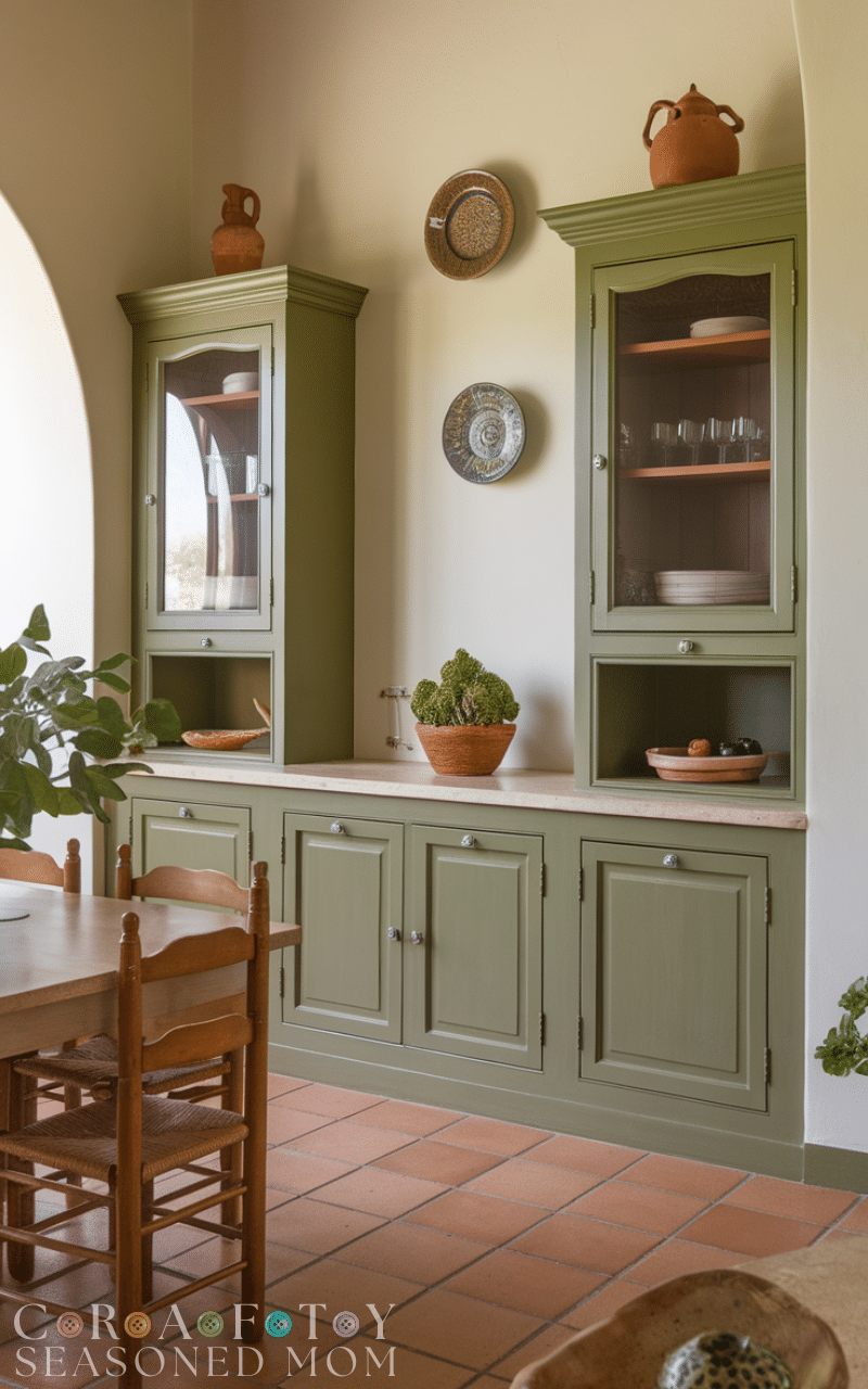 Olive green is inspired by the landscapes of countries like Greece and Italy, where olive trees define the scenery. As part of mediterranean color ideas, olive green adds richness and a natural touch. It works beautifully on cabinets, accent walls, or decorative elements. Pair olive green with terracotta and cream for a balanced palette. Mediterranean color ideas that include this shade feel organic, fresh, and full of character. It brings the calming energy of nature indoors while maintaining the warmth and charm typical of Mediterranean design.