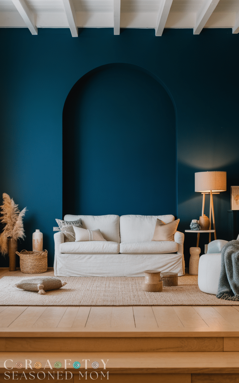 Deep azure blue instantly captures the spirit of mediterranean color ideas, reminding you of endless coastal skies and sparkling waters. This rich shade works beautifully on accent walls, kitchen cabinets, or statement furniture pieces. When paired with crisp white walls and natural wood textures, mediterranean color ideas like deep azure blue create contrast and elegance. Add woven baskets, ceramic vases, and soft linen fabrics to enhance the relaxed yet refined atmosphere. This color feels bold but calming at the same time, making it perfect for living spaces that need personality without losing comfort and warmth.