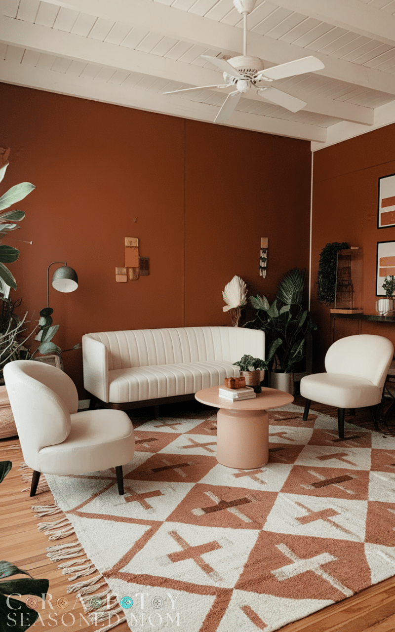 Burnt orange is a deeper, richer version of terracotta, adding intensity to mediterranean color ideas. This shade creates warmth and drama while still feeling natural. Mediterranean color ideas that include burnt orange work beautifully in textiles, rugs, or statement walls. Pair it with neutral tones and natural wood for a balanced and inviting look.
