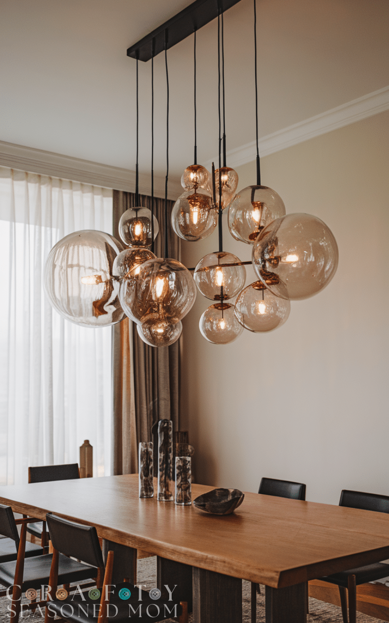 Install a dramatic pendant light or chandelier above your dining table. Statement lighting creates a focal point and elevates the entire space. Even an affordable fixture can transform the room, making it a must-try modern dining room idea on a budget.