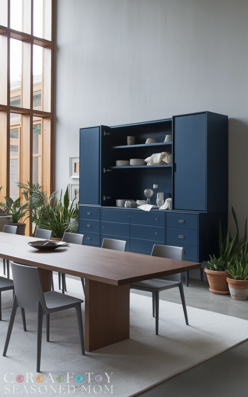 Incorporate storage benches or sideboards for extra tableware and linens. Storage keeps clutter hidden while maintaining sleek lines. This functional addition is a key modern dining room idea on a budget, combining practicality with style.