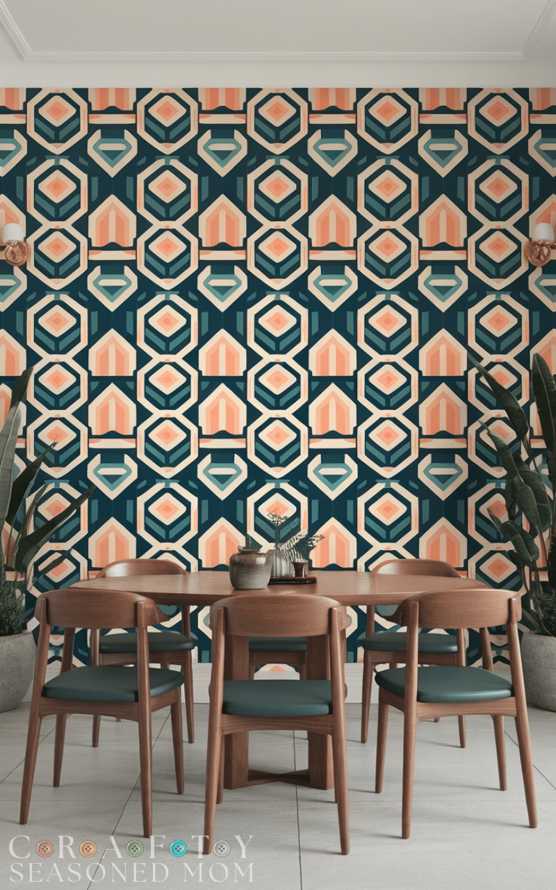 Paint or wallpaper one wall to serve as a modern focal point. Bold colors, textures, or geometric patterns can make the room feel dynamic. An accent wall is an impactful modern dining room idea on a budget that transforms the space with minimal cost.