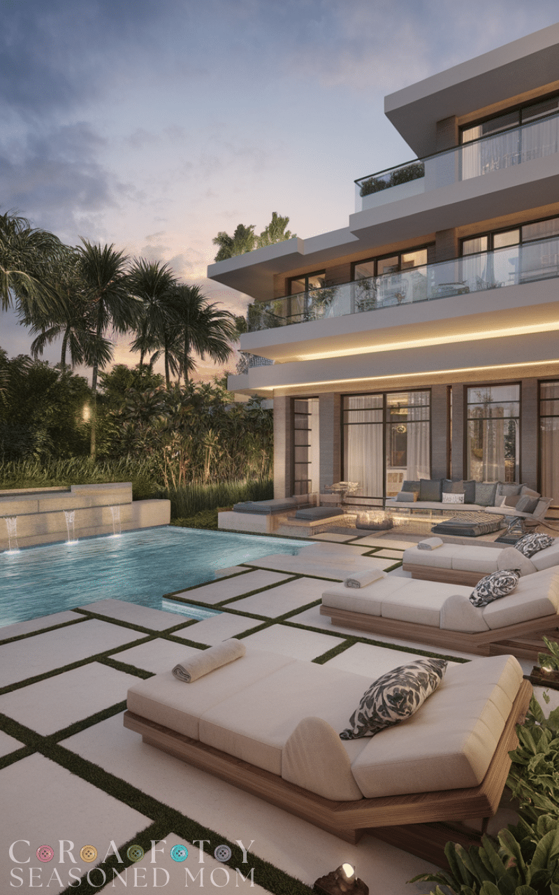 Luxury-inspired pool deck ideas focus on elegance and comfort. Think plush loungers, premium materials, ambient lighting, and integrated landscaping. These pool deck ideas create a five-star hotel feel at home. Adding water features or built-in seating enhances the design. Resort-style pool deck ideas deliver the ultimate outdoor relaxation experience.