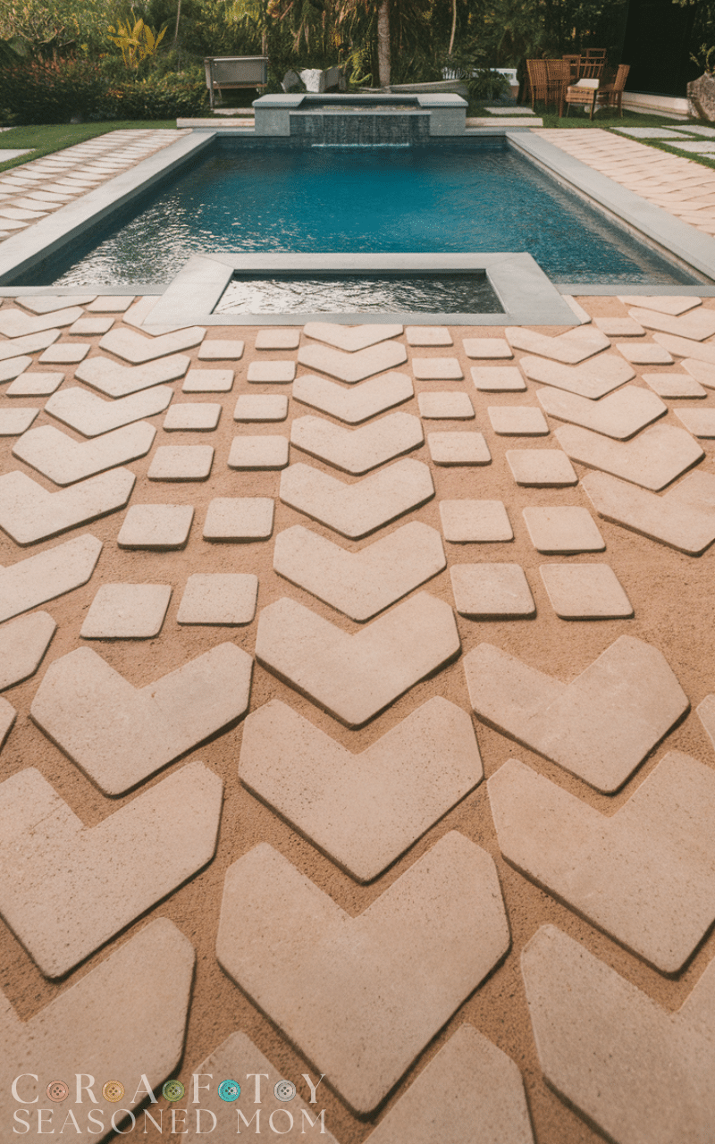 Pavers are a flexible and customizable pool deck that offers both beauty and practicality. They come in various shapes, colors, and textures, allowing you to create unique patterns. These pool deck ideas are easy to repair since individual pavers can be replaced without removing the entire surface. They also provide excellent drainage, which reduces water buildup around the pool. Paver pool deck ideas are ideal for homeowners who want a stylish yet functional outdoor area.