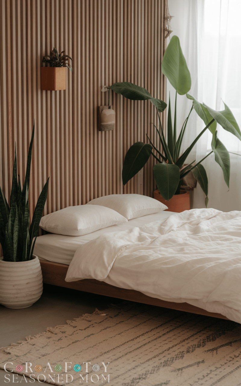 Adding indoor plants is a simple way to enhance relaxing Japandi bedroom designs. Greenery introduces life and freshness, connecting the space to nature while maintaining tranquility. Minimalist pots and strategic placement keep the aesthetic clean and uncluttered. Plants like bonsai, snake plants, or peace lilies require low maintenance and complement the neutral tones and natural textures of the room. The presence of plants also improves air quality and creates a calming atmosphere, reinforcing the relaxing vibe central to Japandi design. A touch of green can transform a simple bedroom into a peaceful, nature-inspired retreat.