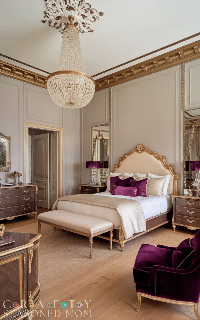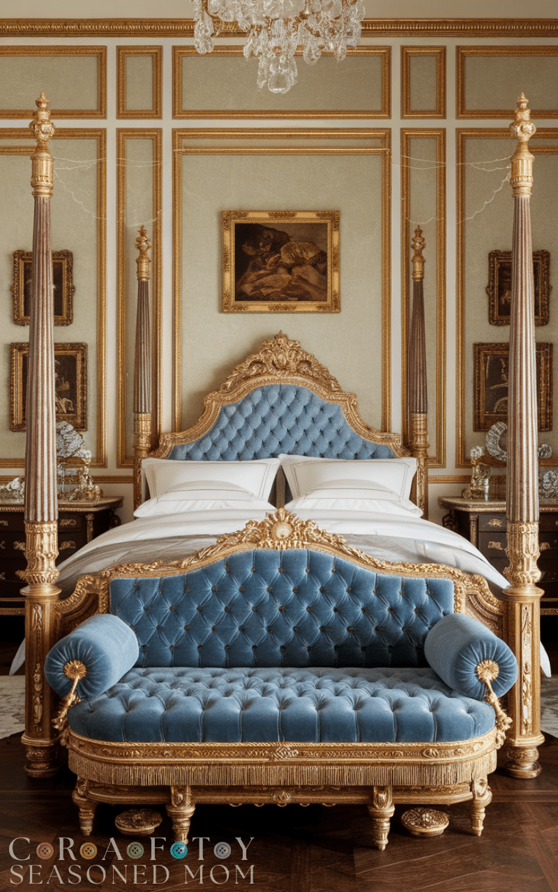 Adding a tufted bench at the foot of the bed complements royal bedroom ideas beautifully. Upholstered in velvet or leather, it adds functionality and elegance. This piece creates symmetry and completes the bed area visually. Choose colors that coordinate with your bedding for a seamless look. A tufted bench reinforces the structured, luxurious style that defines royal bedroom ideas.