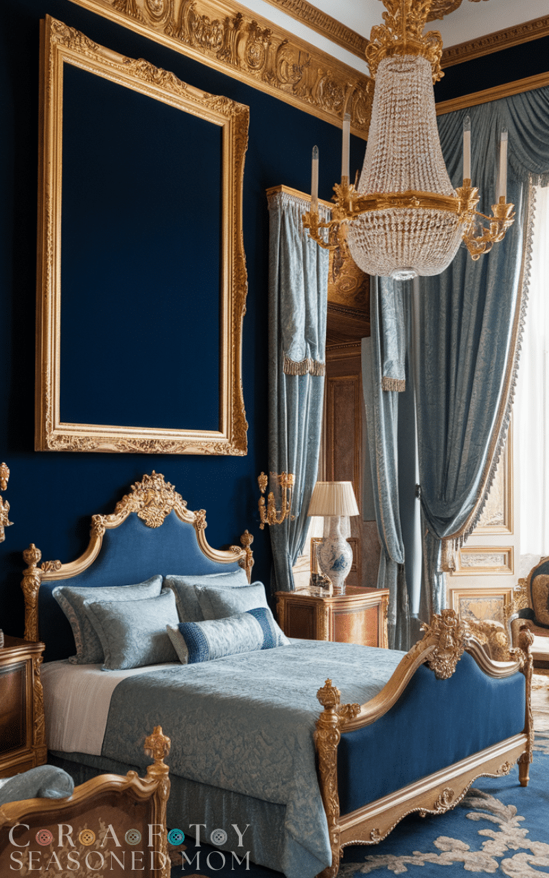 Color plays a powerful role in royal bedroom ideas. Deep jewel tones like royal blue, emerald green, plum, and ruby red create depth and drama. These colors evoke a sense of royalty and sophistication when paired with gold or silver accents. You can apply them through accent walls, bedding, or curtains. Combining bold shades with lighter neutral tones prevents the room from feeling dark. A carefully selected palette ensures your royal bedroom ideas feel dramatic yet balanced.