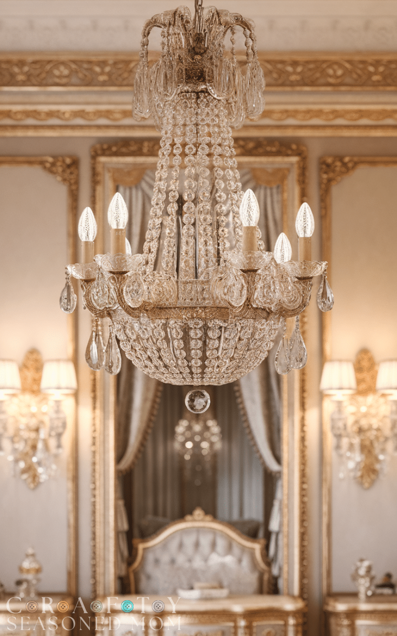 Nothing captures royal bedroom ideas better than a sparkling crystal chandelier hanging gracefully from the ceiling. This lighting choice adds glamour and instantly elevates the room’s atmosphere. Choose a chandelier with intricate details to reflect light beautifully across the walls and furniture. When combined with soft wall sconces, it creates a warm and elegant glow. A chandelier serves as both décor and function, making royal bedroom ideas feel authentic and refined while maintaining a balanced and inviting ambiance.