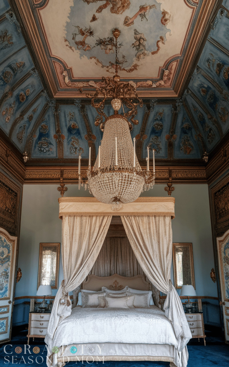 Ceiling medallions or subtle painted designs can elevate royal bedroom ideas to another level. These decorative elements draw attention upward and add sophistication. Pairing them with a chandelier creates a balanced and harmonious look. Even simple detailing around lighting fixtures enhances the sense of luxury. Paying attention to the ceiling ensures your royal bedroom ideas feel complete and thoughtfully designed from top to bottom.