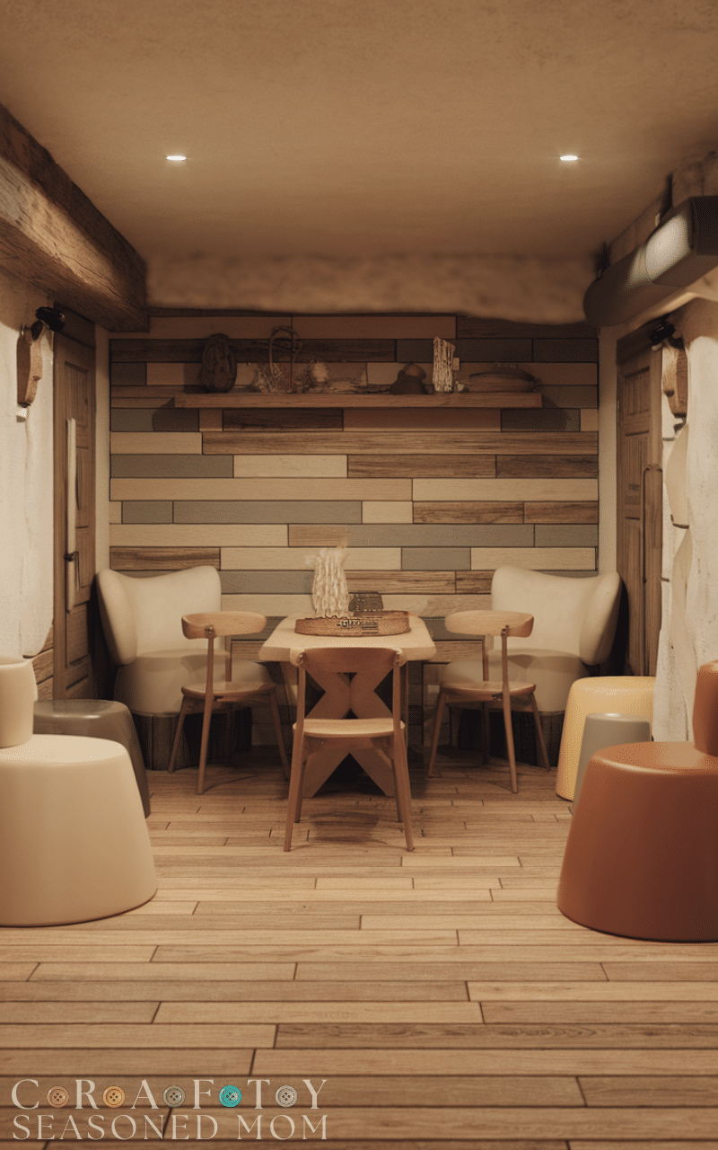 Choosing earthy tones like beige, brown, cream, and soft gray enhances rustic basement ideas. These colors reflect light and prevent the basement from feeling too dark. When paired with wooden textures and soft lighting, neutral shades create a calm and welcoming atmosphere. Rustic basement ideas thrive on subtle color combinations that highlight natural materials rather than overpower them.