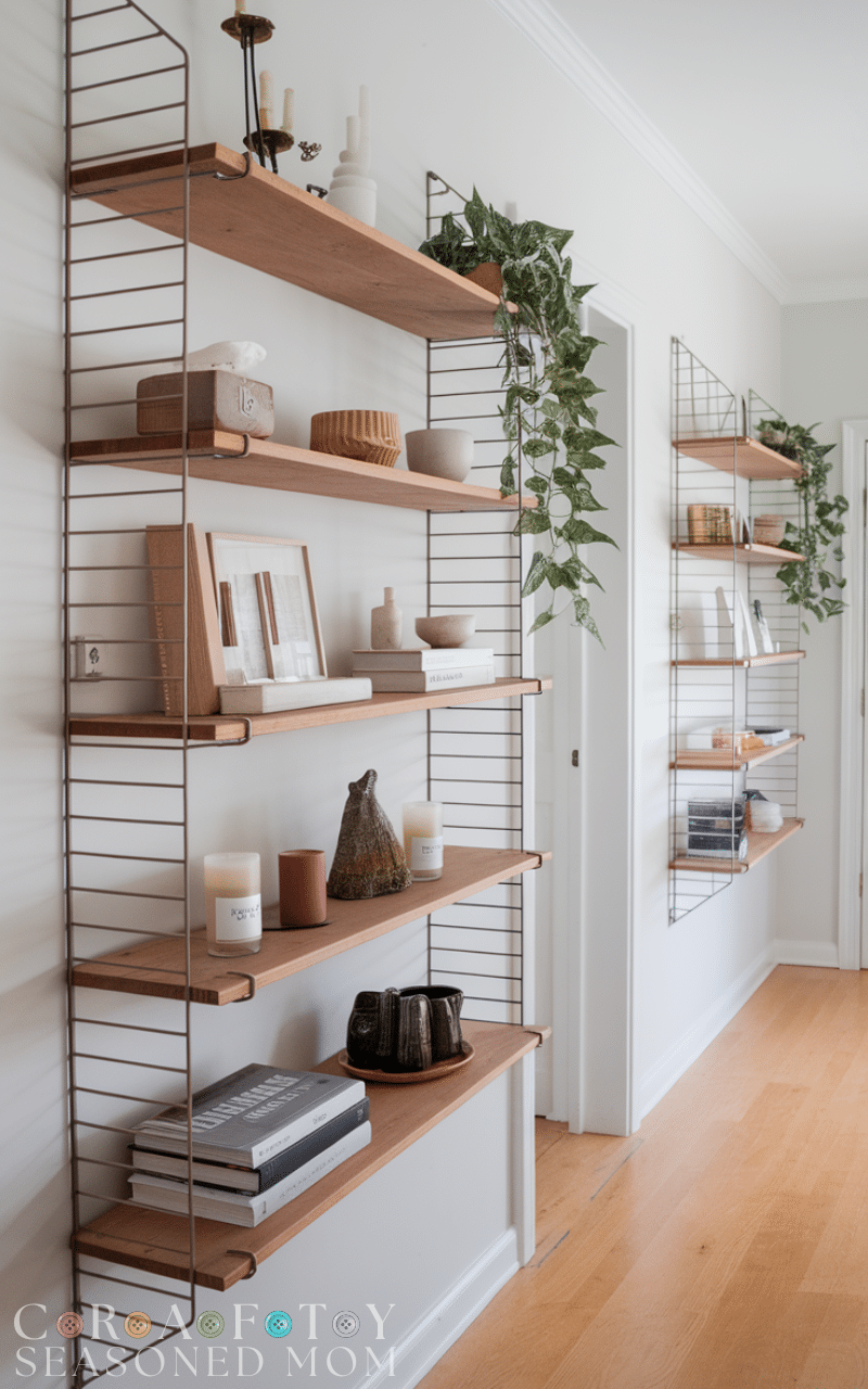 Floating shelves are a smart addition to Scandinavian hallway designs. They provide storage without taking up floor space. Choose slim wooden shelves and style them with a few curated items like candles, books, or small ceramics. Scandinavian hallway designs require restraint, so avoid overcrowding the shelves. Keep the arrangement balanced and airy. This idea combines practicality with decoration, allowing your hallway to remain clean and organized.