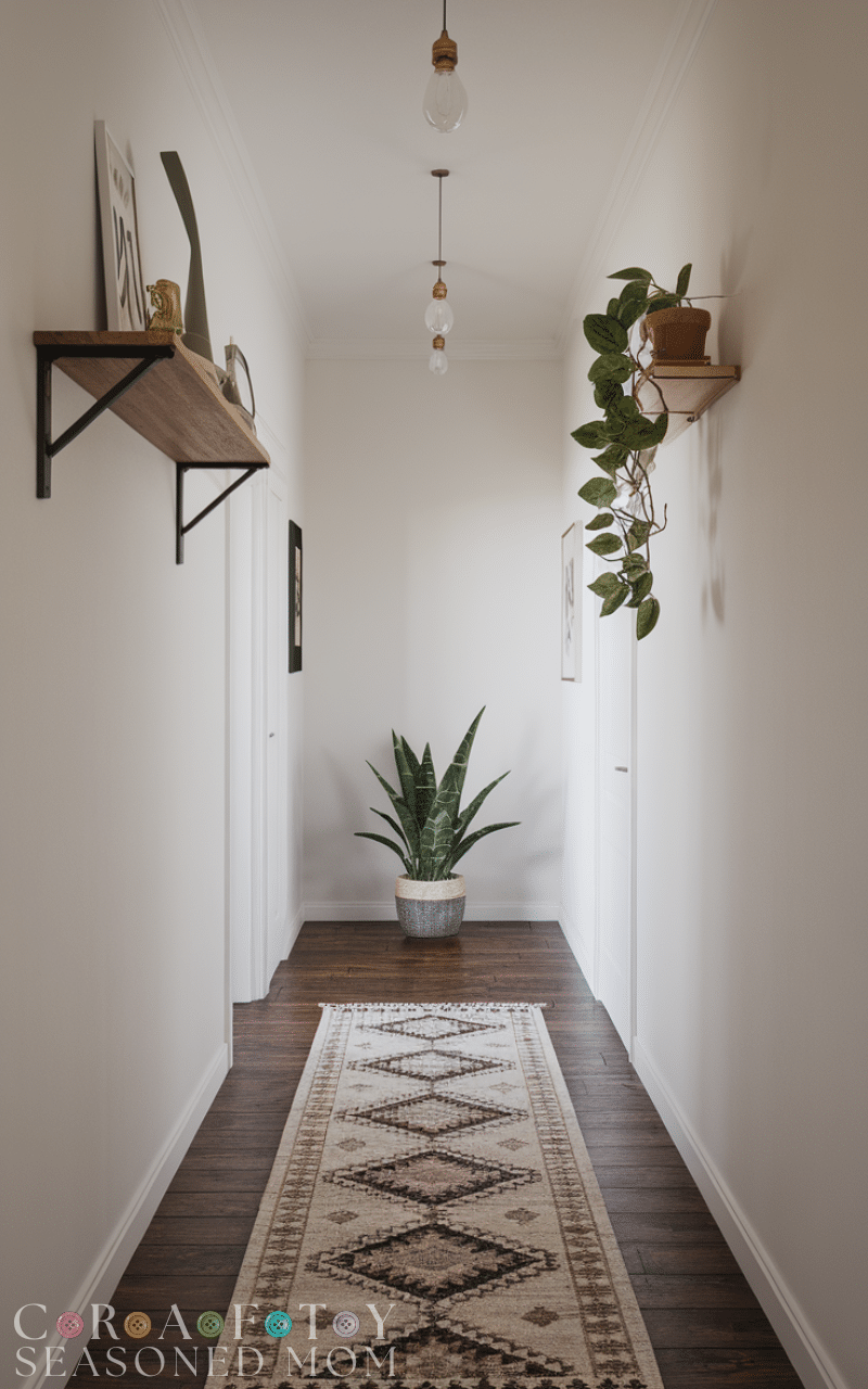 Add warmth with a soft runner rug in neutral tones. Scandinavian hallway designs often include natural fabrics like wool or cotton with subtle patterns. A runner makes the space feel cozy while protecting the floor. Choose light colors with simple geometric details to match Scandinavian hallway designs. Avoid heavy or overly colorful rugs, and keep the design understated. This touch adds texture and comfort while maintaining the clean and airy look that defines this style.