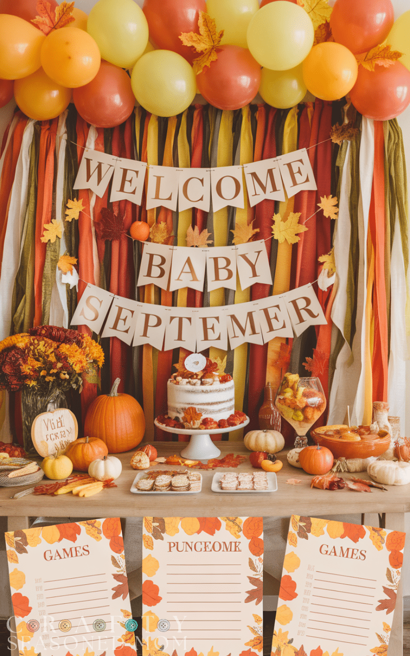 Engage guests with DIY autumn craft stations. Activities like decorating mini pumpkins, making fall-themed cards, or creating personalized baby onesies add a fun, interactive element. This idea is perfect for a September baby shower, encouraging creativity while celebrating the season. Guests can take home their crafts as keepsakes, making the event even more memorable. By incorporating DIY activities, your baby shower becomes both entertaining and meaningful, leaving everyone with a sense of accomplishment and a personal connection to the celebration.