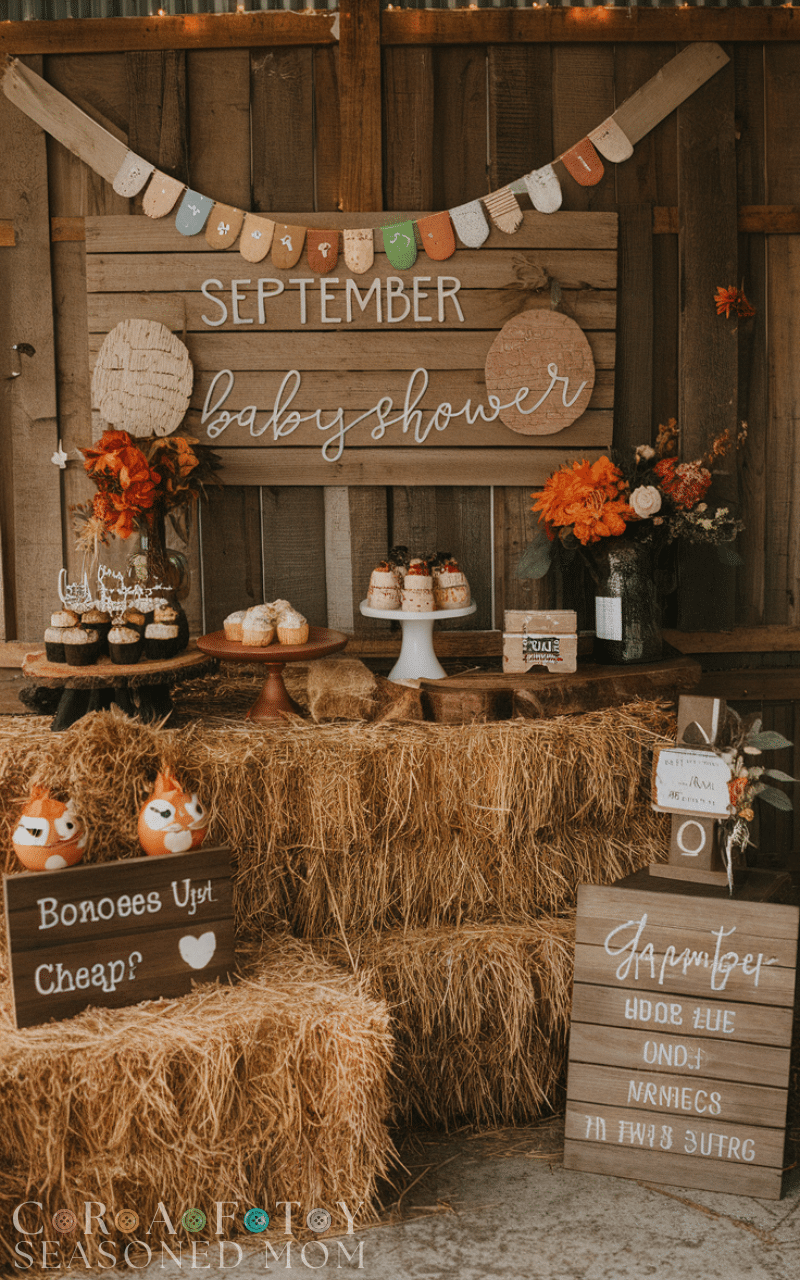 A rustic barn theme perfectly complements September’s country charm. Use hay bales, wooden signage, and fairy lights to create a whimsical, cozy atmosphere. Guests can enjoy themed treats, seasonal drinks, and games in a charming, laid-back environment. This idea works especially well for families who enjoy a touch of nature with a rustic vibe. The barn setting naturally fits the colors and textures of September, giving your baby shower a unique and memorable feel that will resonate with everyone who attends.