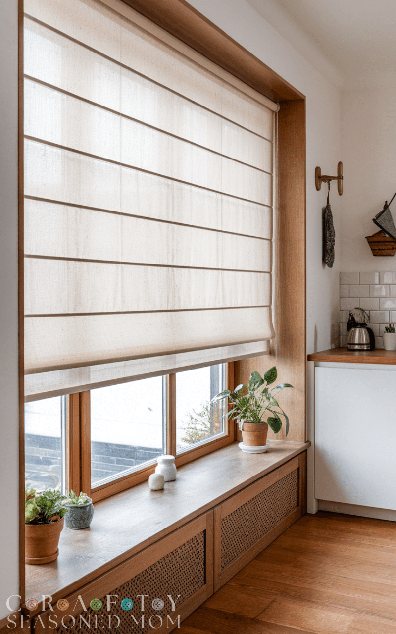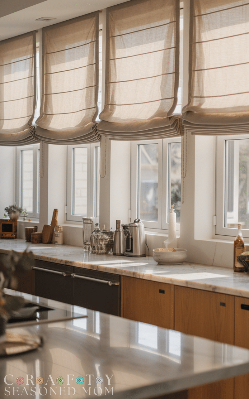 Roman shades are a charming option for any kitchen window treatment because they add softness and style to your space while also offering privacy and light control and they come in various fabrics and colors making it easy to match your kitchen décor and they are easy to raise and lower whenever you need a change in light or view and they can be customized to fit any window size and they work well with both modern and traditional kitchens and they can even add a touch of elegance without overwhelming the room and you will love how your kitchen window treatments transform the overall feel of your kitchen.