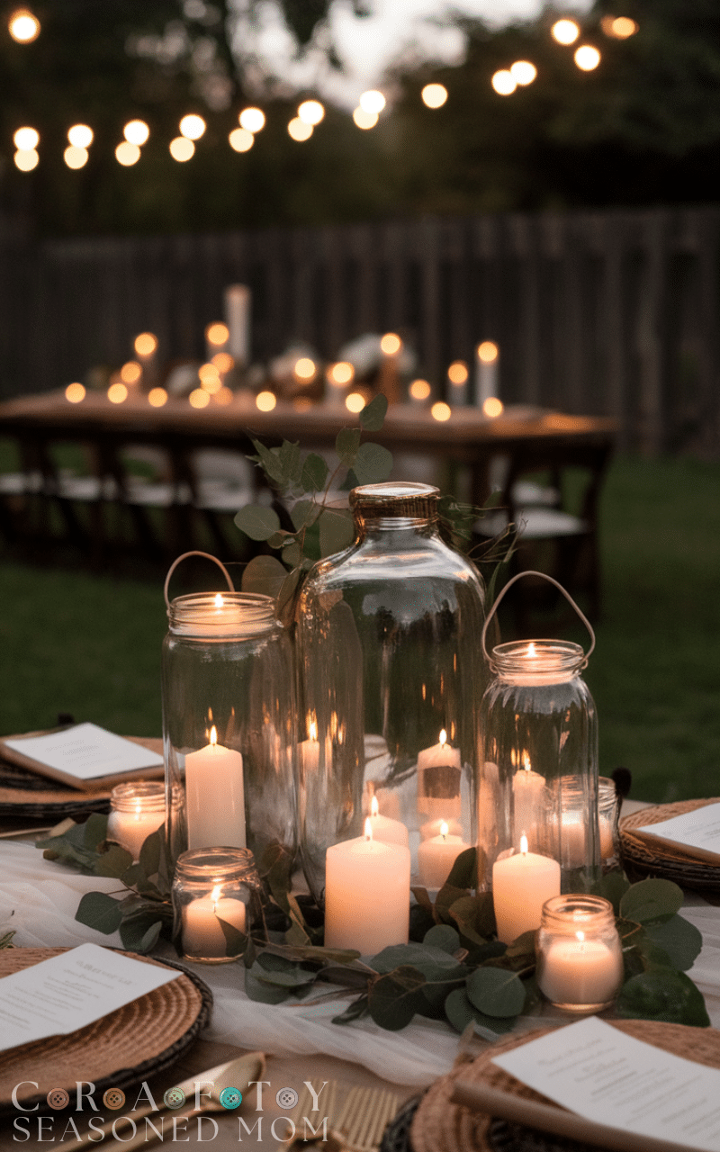 Nothing beats the soft glow of candles for a small backyard wedding. Fill your tables and pathways with different candle sizes inside jars or lanterns to create a dreamy mood. As the sun sets the flickering light will surround everyone with warmth and romance making your wedding night feel timeless and magical.