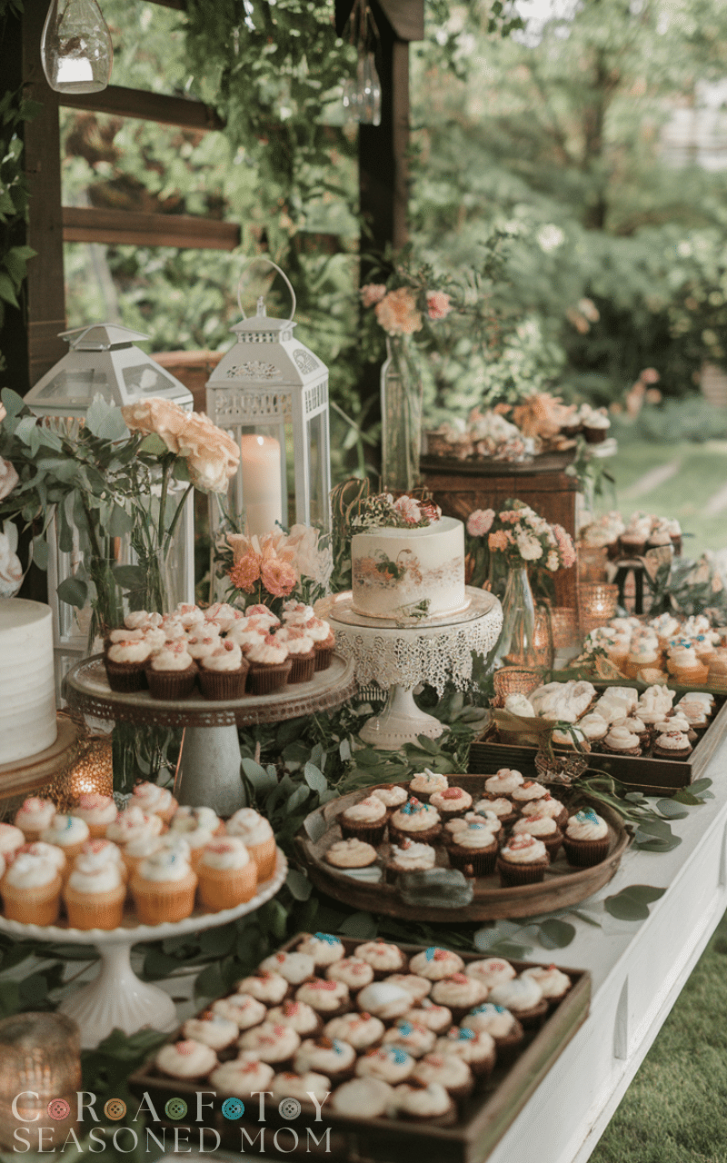 A dessert table adds charm and flavor to your small backyard wedding. You can fill it with cupcakes cookies and mini cakes displayed on rustic trays or vintage plates. Guests will love choosing their treats and it doubles as decoration with its colorful and sweet look that brightens up your backyard celebration.