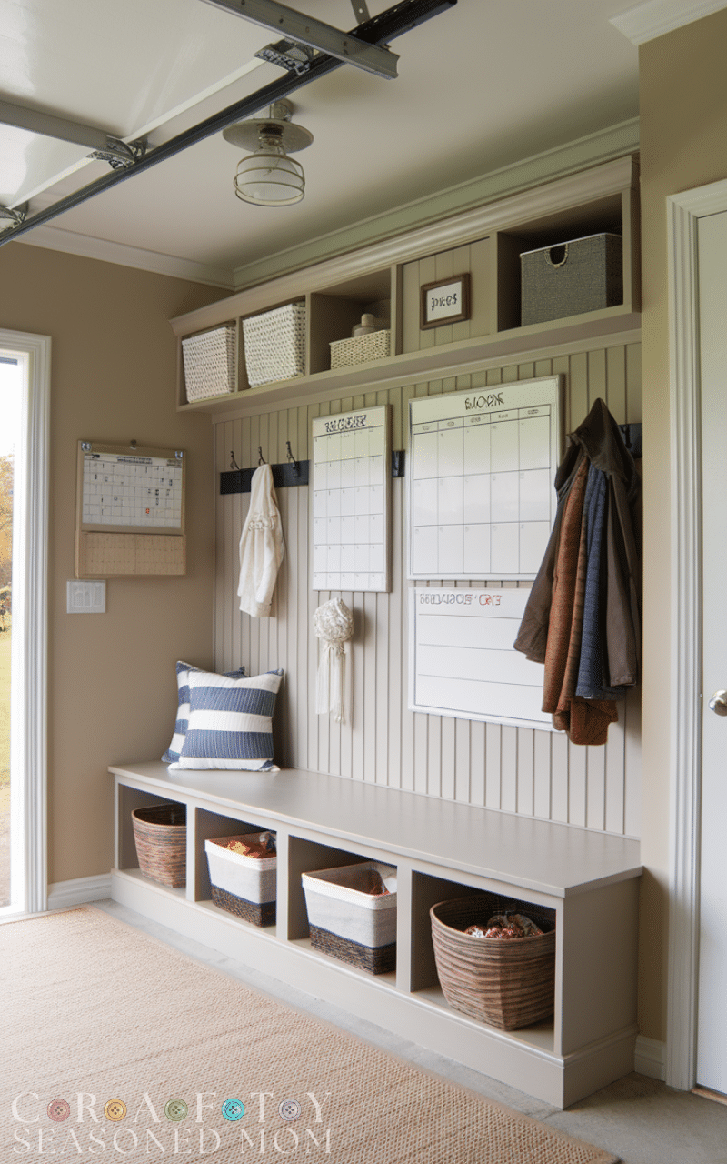 In the world of Garage Mudroom Ideas a command center brings total clarity because it includes a calendar and a whiteboard and a space for reminders and schedules and this helps the whole family stay coordinated without stress and it organizes tasks and appointments and creates a flow that makes the day easier and it becomes the heart of communication near the garage door which makes it one of the most powerful Garage Mudroom Ideas for busy homes.