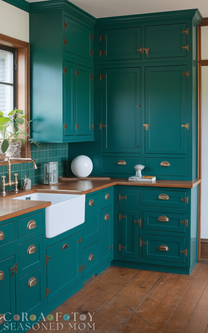 3. Hunter Green Cabinets With Mid Brown Wood Floors