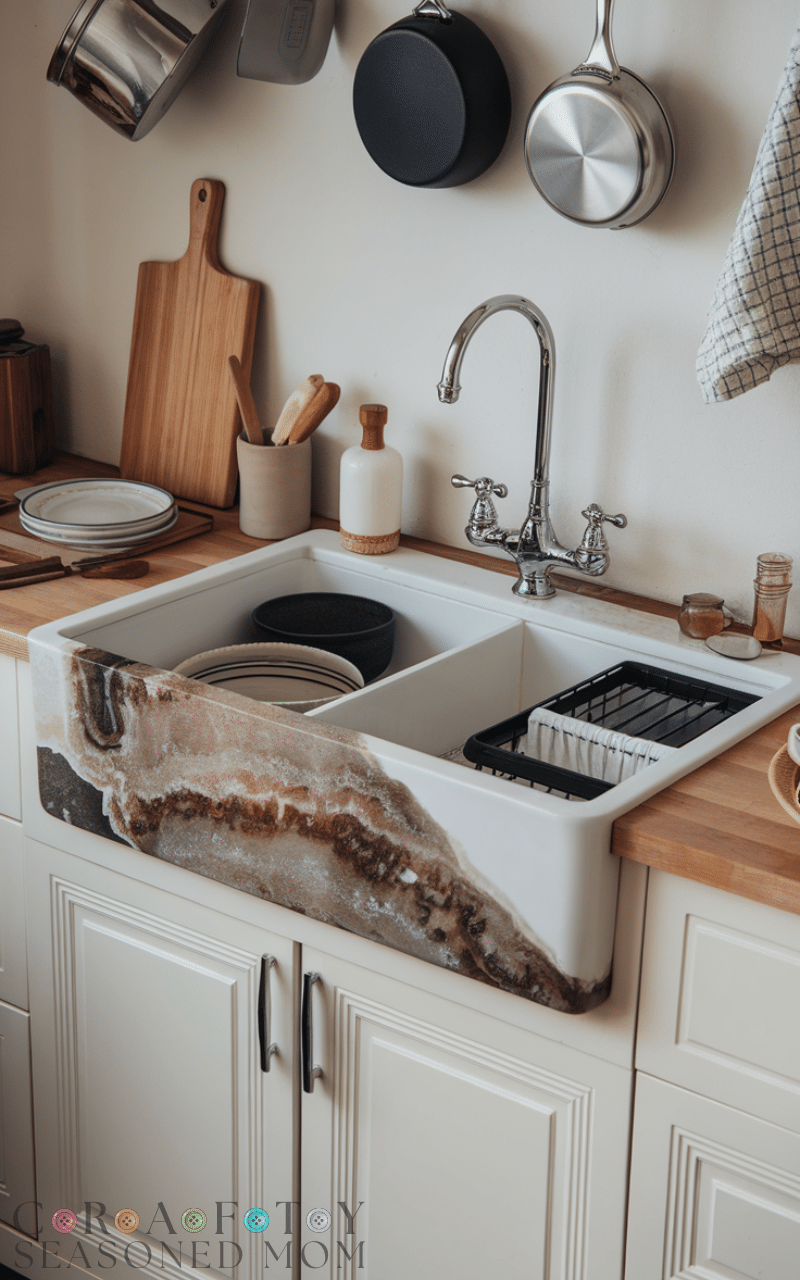 Farmhouse kitchen sinks are large and deep which makes them great for washing big pots and pans and they create a vintage charm and they are made from durable materials and they add personality to your kitchen and they allow you to wash dishes comfortably without splashing water all around and they fit perfectly with rustic and modern kitchens and they are easy to clean and they are strong and they make your kitchen feel welcoming and they are ideal for families who cook a lot and they are practical and they give a traditional look and they make dishwashing easier and they are perfect for a homey kitchen style.