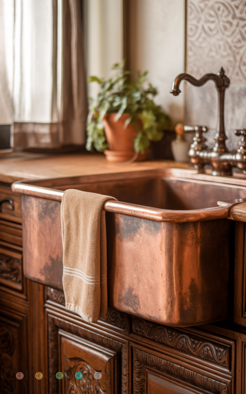 Copper kitchen sinks are unique and beautiful and they develop a natural patina over time which gives your kitchen a rustic and warm look and they are antimicrobial which makes them hygienic and they resist bacteria growth naturally and they are perfect for vintage and farmhouse kitchens and they are easy to clean and they are strong and durable and they give character to your kitchen and they are ideal for stylish kitchens and they require low maintenance and they make washing dishes feel special and they are functional and they add a luxurious feel and they create a cozy kitchen atmosphere.