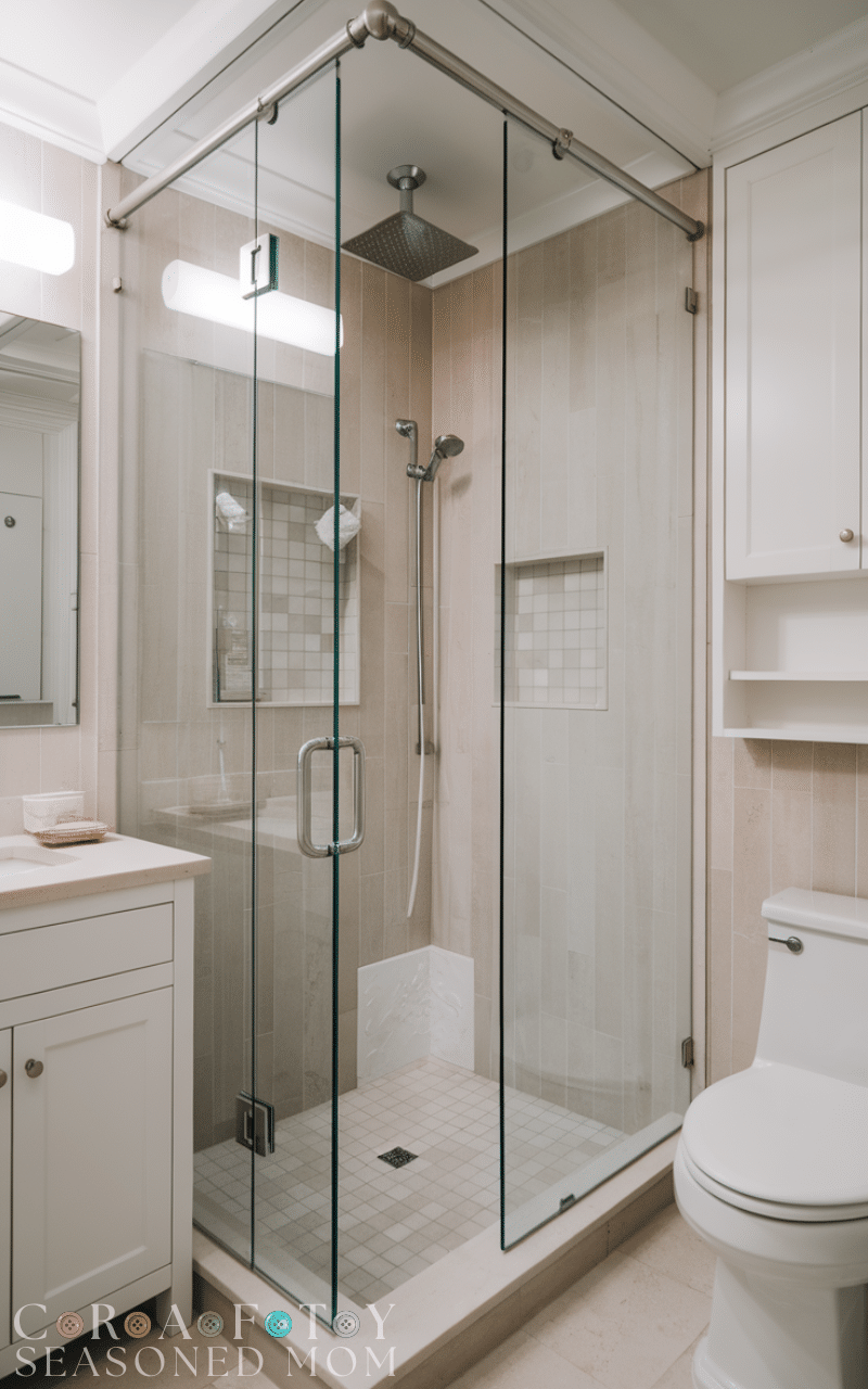 Walk in showers ideas are perfect for small bathrooms because they remove bulky tubs and open up floor space. A curbless or low-threshold design makes the room feel larger and more accessible. These Walk-In Showers Ideas often include glass panels and light tiles to enhance openness. Smart layouts prove that even compact bathrooms can feel stylish, functional, and comfortable.