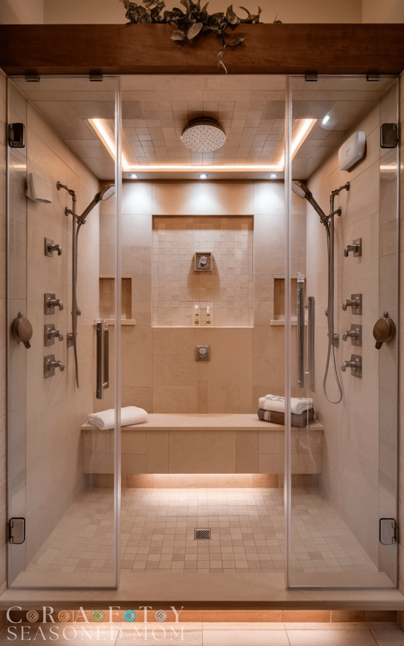 Walk in showers ideas reach the next level with spa-inspired features like multiple showerheads, steam options, and soft lighting. These designs focus on comfort, relaxation, and high-end finishes. Luxury walk in showers ideas turn daily routines into indulgent experiences. Thoughtful lighting and natural materials complete the spa atmosphere.