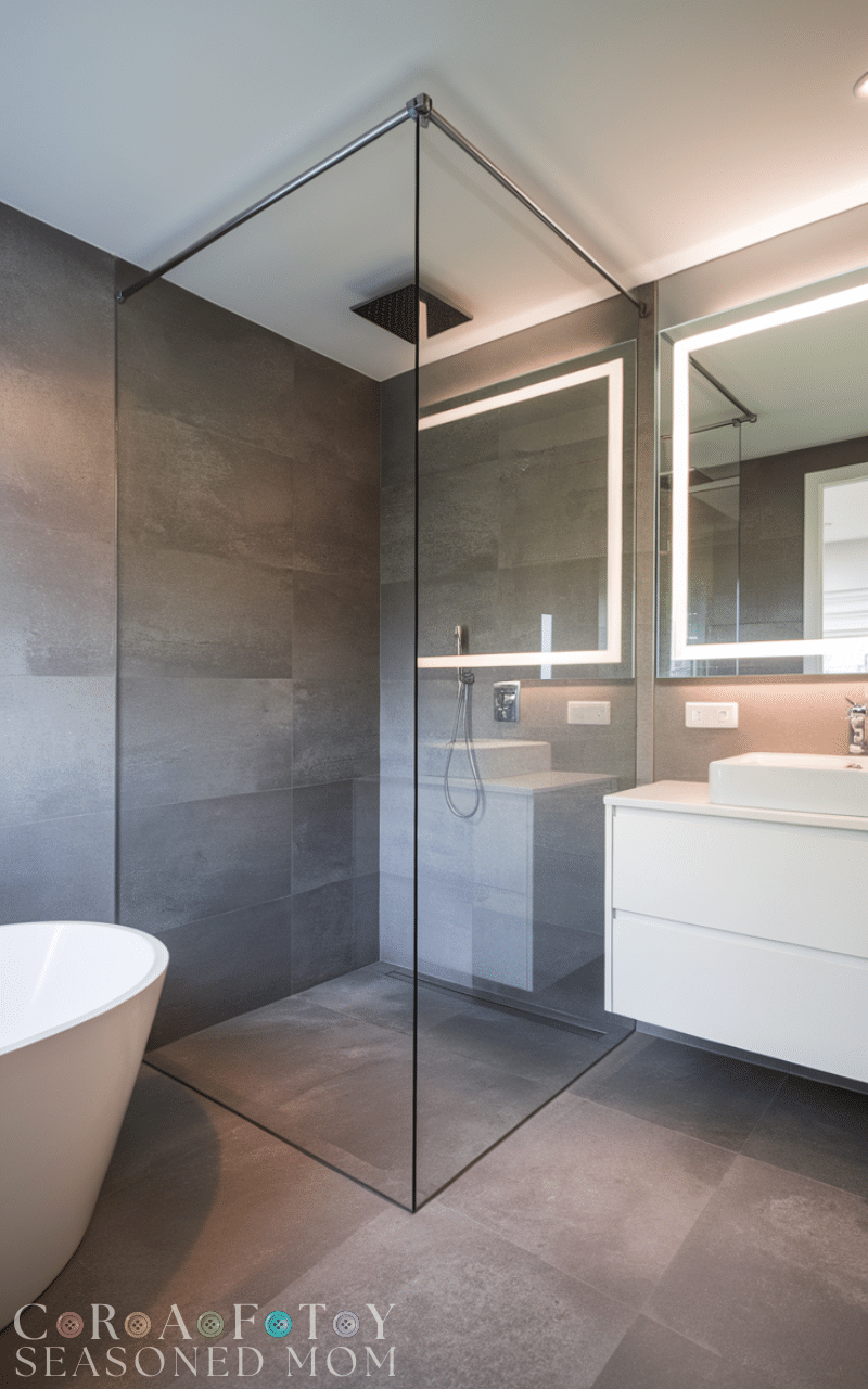 To solve the functional flaws of your Walk-In Showers Ideas, consider the “small curb” approach. Even a tiny step-up can define the wet zone and keep water and curious pets better contained without sacrificing the sleek look of a modern renovation.