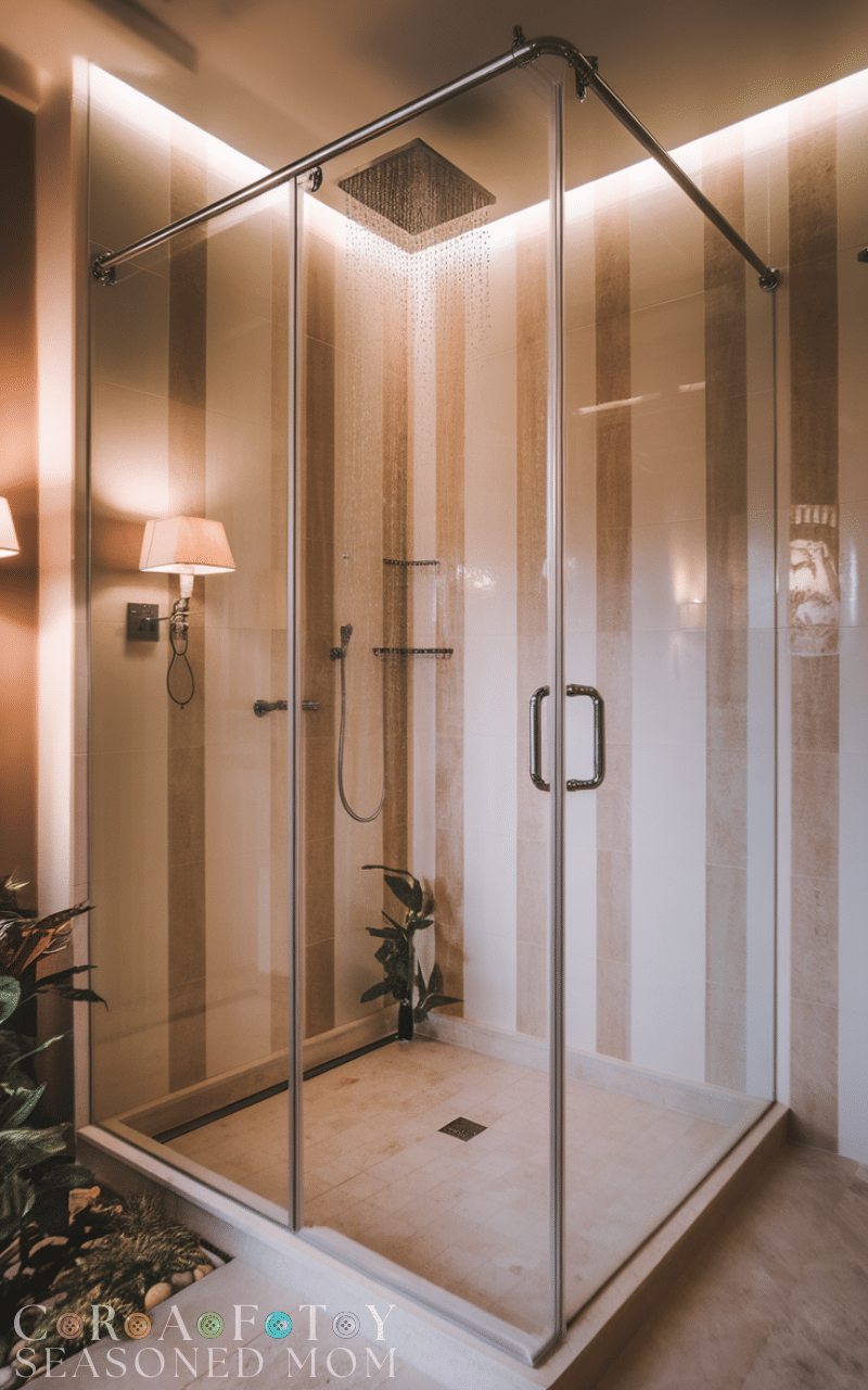 Walk in showers ideas feel luxurious when you include a rainfall showerhead that mimics natural rain. This feature creates a relaxing, spa-like experience right at home. These Walk-In Showers Ideas are perfect for stress relief and daily comfort. Combined with warm lighting and neutral tiles, rainfall showers turn simple bathrooms into calming retreats.