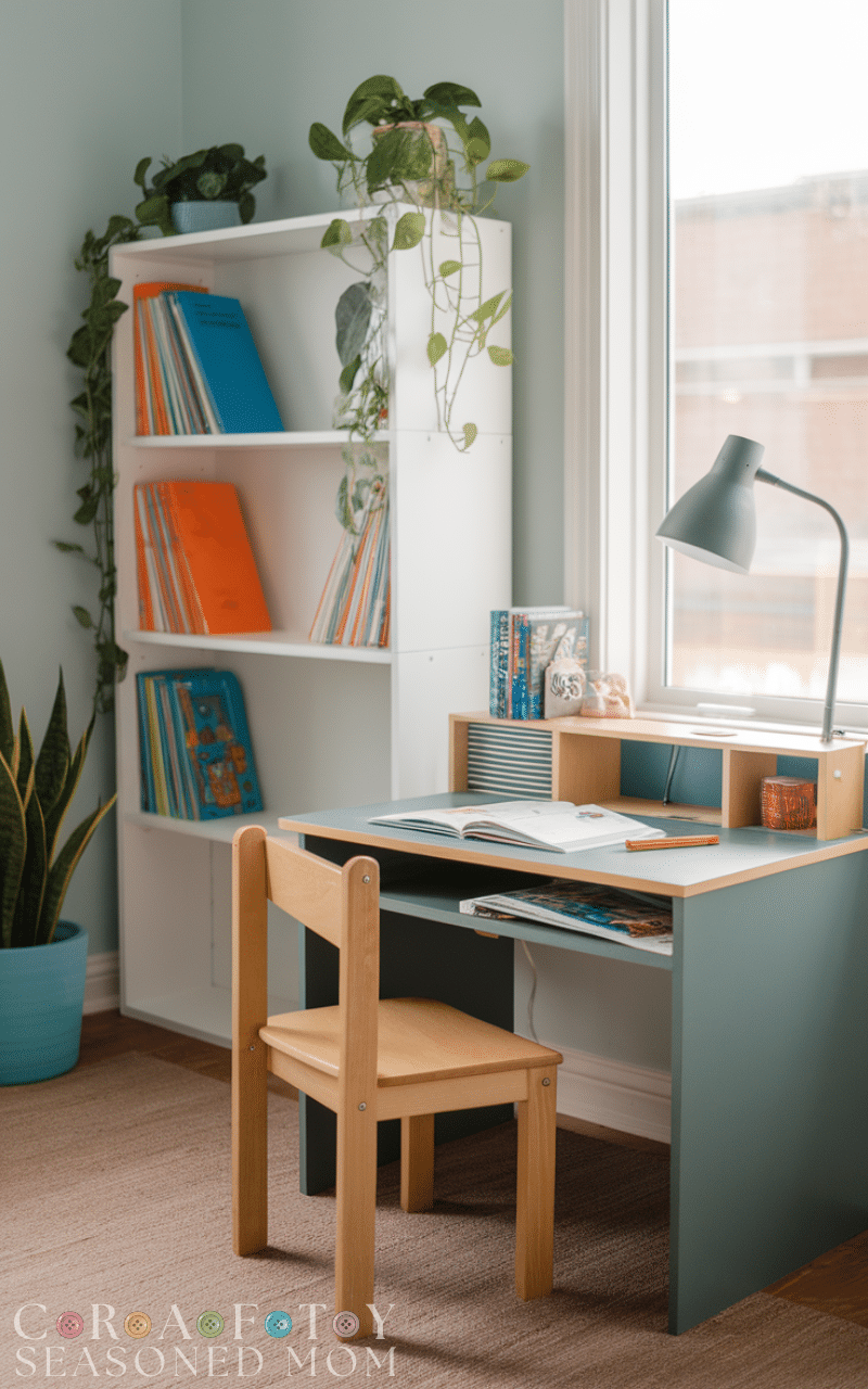 A small desk or activity table is a useful part of young boys bedroom ideas as kids grow. It provides a space for drawing, homework, or crafts. Choosing a simple, compact desk keeps the room practical without taking up too much space.